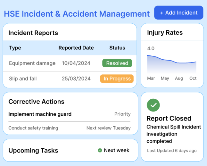 Shift from panic to power with our health and safety management software. Automate tedious tasks, build custom workflows, and empower employees with mobile-enabled reporting.