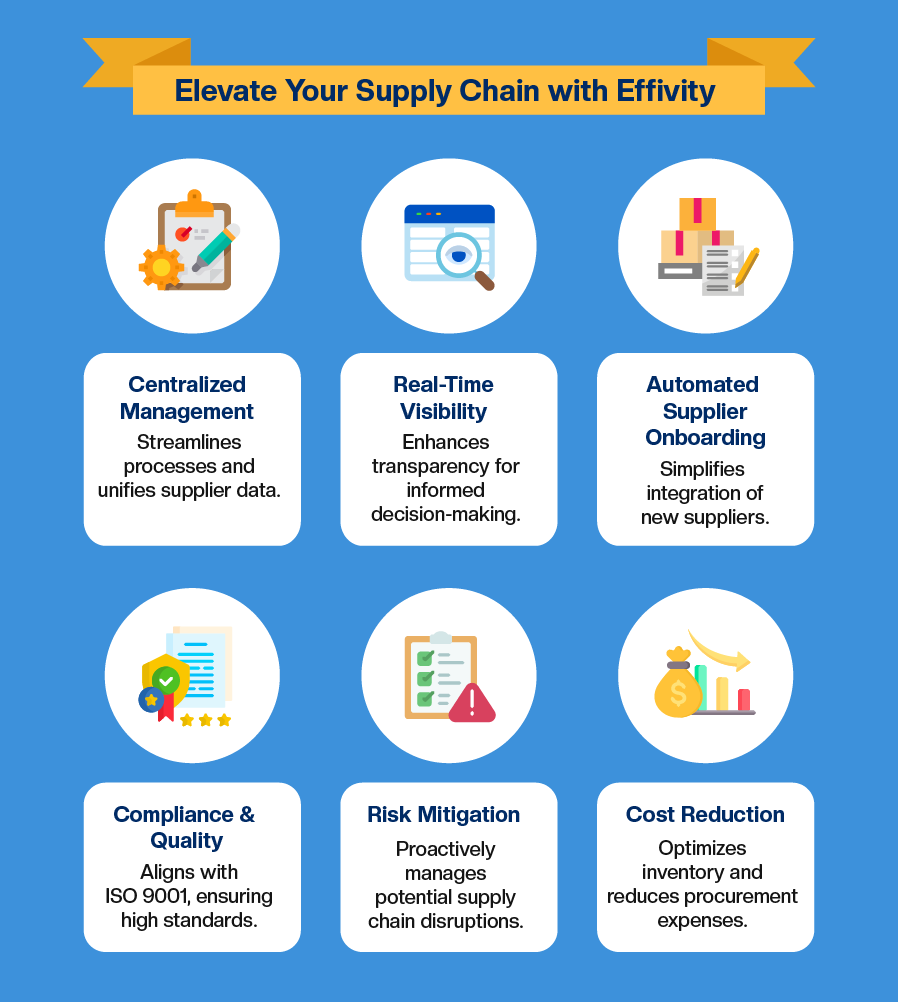 A comprehensive supply chain management software can help you elevate the standards for your purchase order management. The software allows you to create a flexible and reliable supply chain that also meets compliance requirements and protocols. Get started with Effivity by contacting us to schedule a free trial and consultation.
