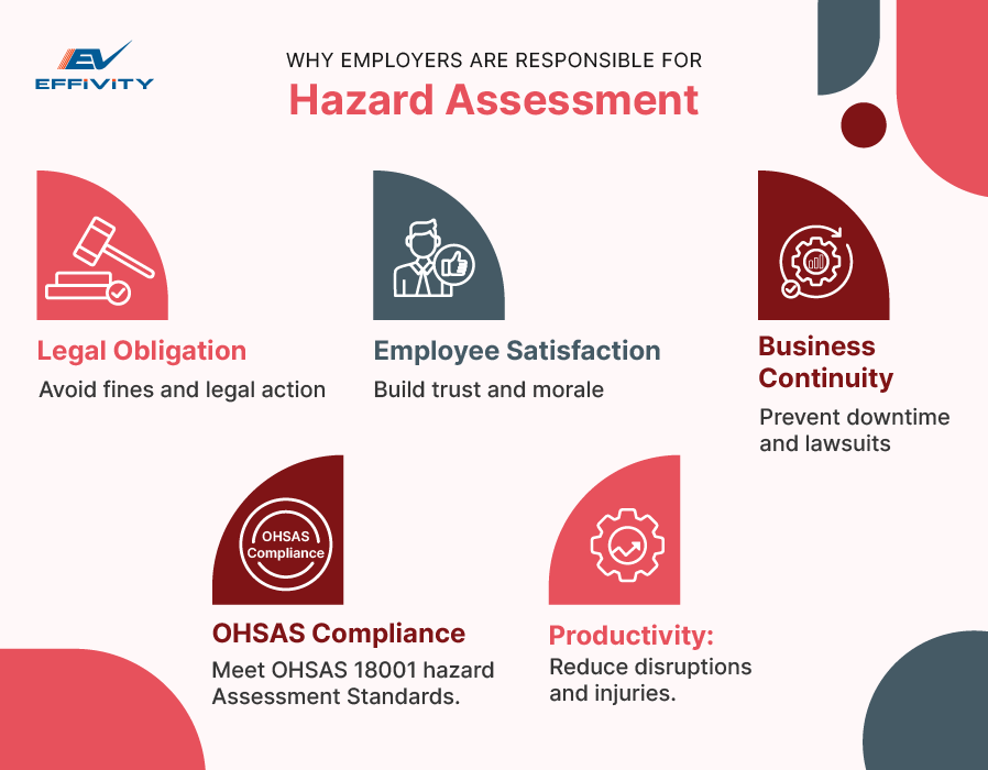 - OHSAS Compliance: Adhering to OHSAS 18001 hazard assessment protocols ensures your workplace meets international safety standards, reducing risks and liability.