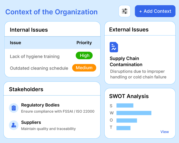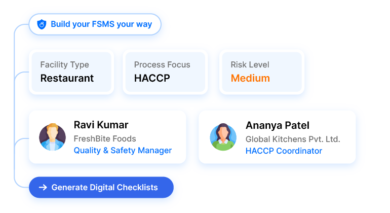 No need to create food safety workflows from scratch. Our FSMS is equipped with everything customizable-workflows, checklists, reports, dashboards, policies, user roles, etc.