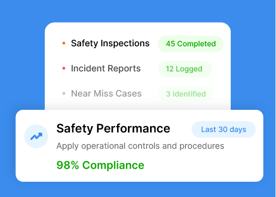Near miss reporting surfaces hazards before they cause injury. A high near miss reporting rate typically reflects a healthy safety culture where workers feel safe raising concerns.
