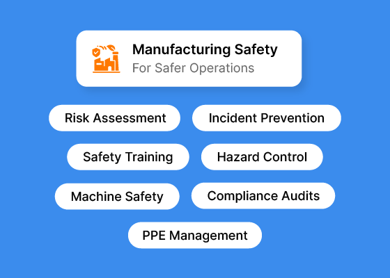 Manufacturing safety management is the structured process of identifying, assessing, and controlling workplace hazards in production environments. It covers everything from machinery safety and chemical handling to training, inspections, and incident reporting.