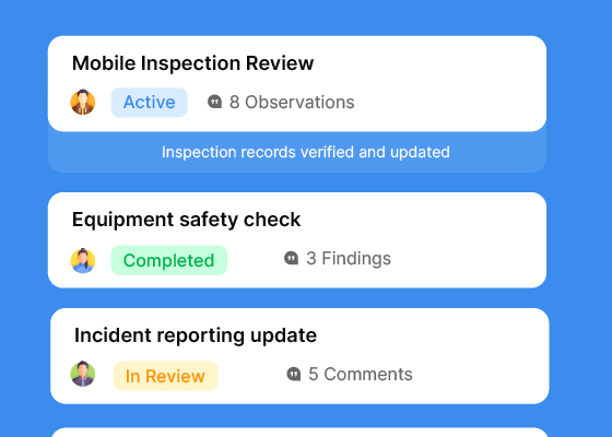 When inspectors spend less time writing notes and more time looking at the work environment, the quality of observations improves. Mobile tools also allow inspectors to reference historical findings from previous inspections on the same site, which helps identify recurring issues that may not be visible in a single round.