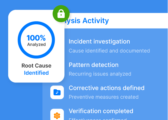 Effective root cause analysis depends on having reliable incident data, a structured investigation workflow, and a clear corrective action process - all linked and traceable.