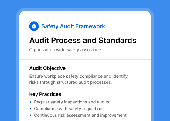 From a compliance standpoint, standards like ISO 45001 require organisations to monitor, measure, and evaluate their occupational health and safety performance. Safety audits are a direct way to meet that requirement - and to demonstrate it to certifying bodies.