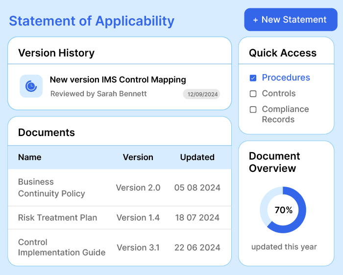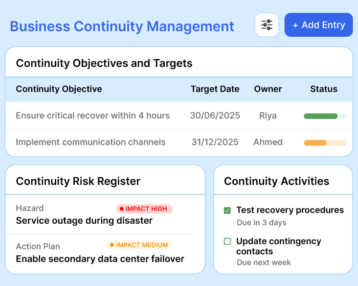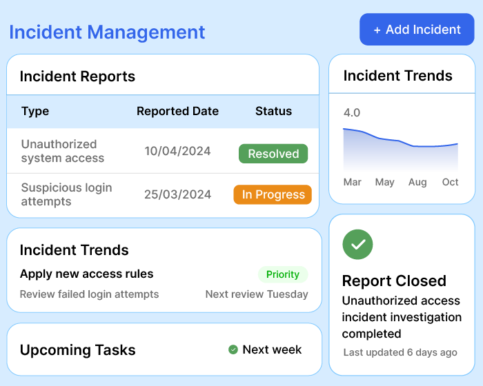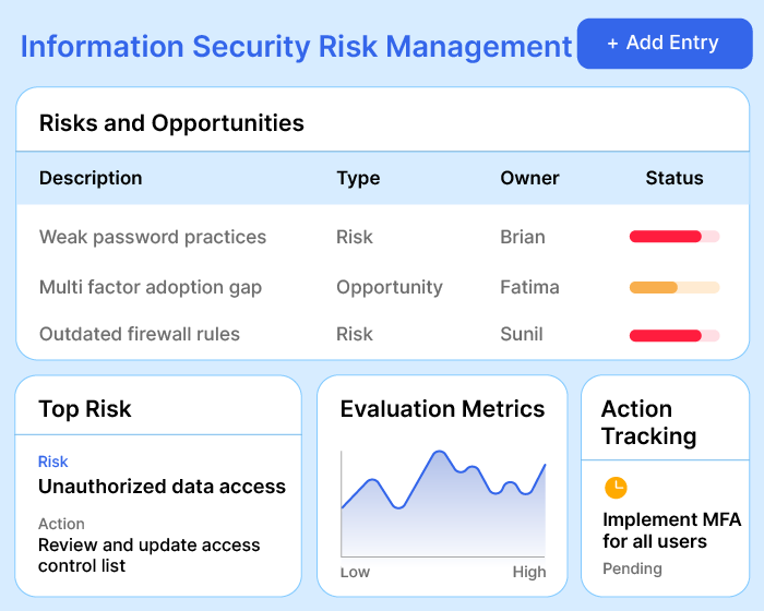 Deploy your ISMS in days, not weeks. We’re built to adapt-so customize, monitor, act, and improve!