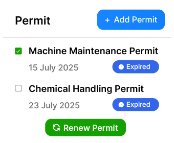 Watch out for expiring permits and renew them before the due date. Track renewal progress, assign roles, access permit details and enhance accountability.