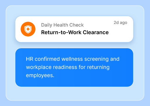 Minimize delays with a simplified employee return procedure after injury/illness. Tackle all documentation digitally, keep everyone in the loop, and even collaborate with healthcare providers.