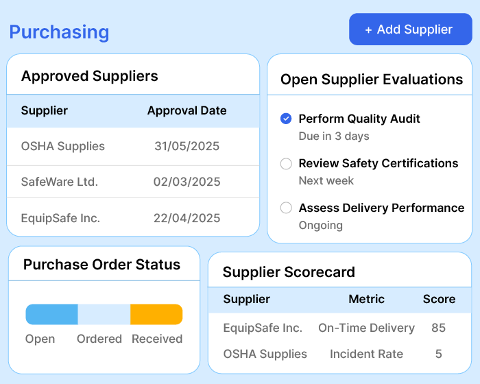 Our health and safety management software automatically schedules preventive maintenance tasks. That means you can stay ahead of repairs, equipment breakdowns, and replacement purchases.